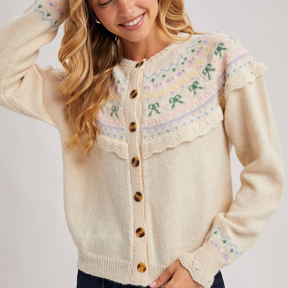 Fair Isle Knit Cardigan Sweater