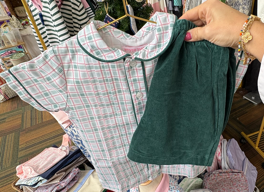 Percy & Tyne Green Boys Velvet Plaid Short Set