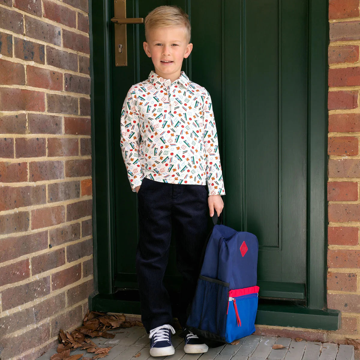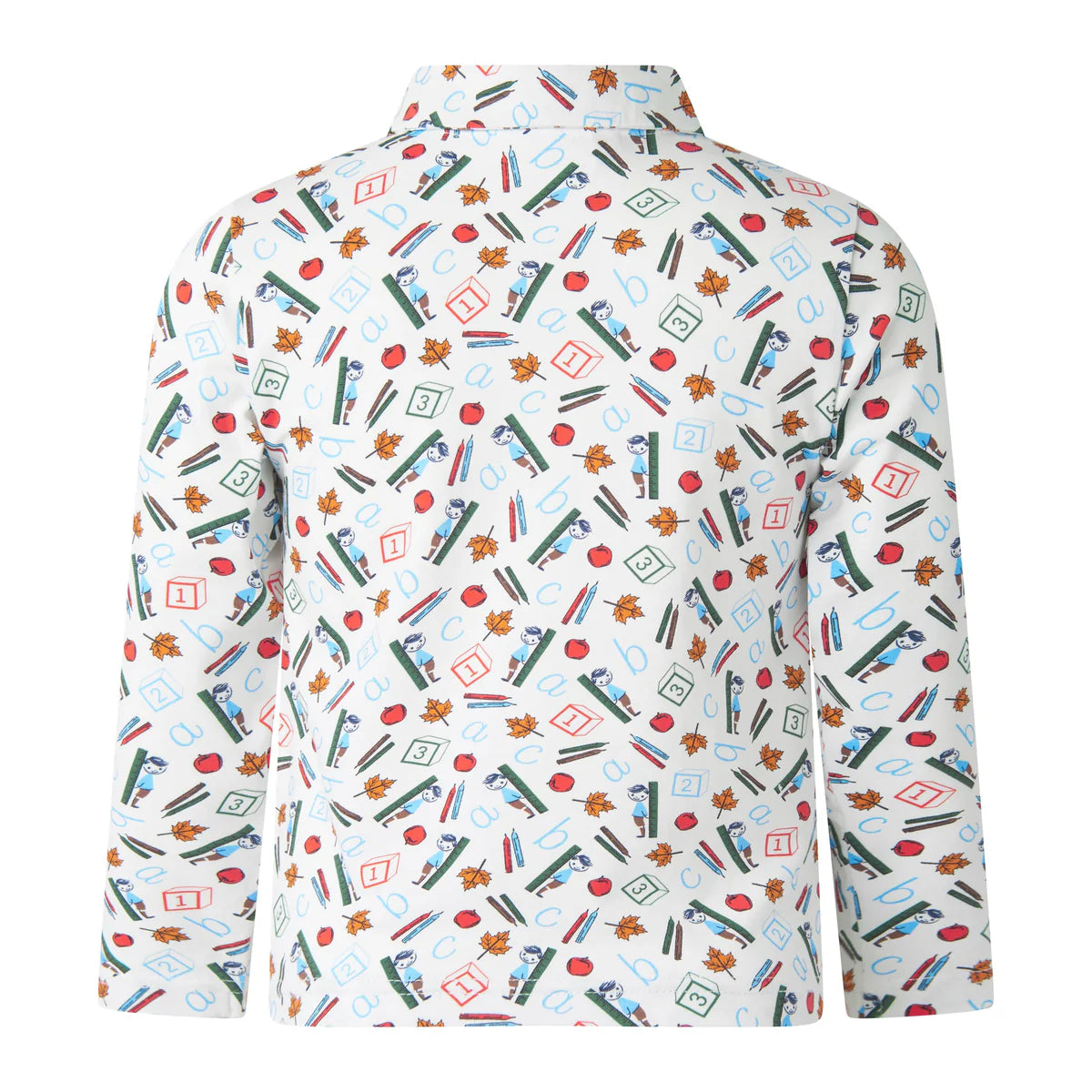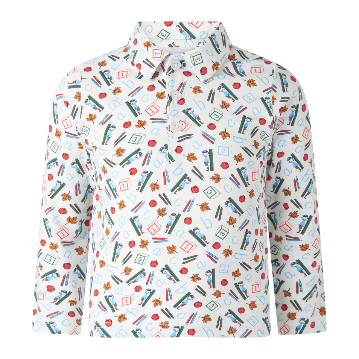 New! Get your little one ready for the new school year with our ABC Polo Shirt. This soft ivory top features a fun school-inspired print in muted tones of red, green and blue, making it the perfect choice for back-to-school and any other every day activity. Let them express their love for learning in style.