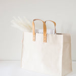 Shoulder Strap or Handle: Genuine leather handles with a 5” drop and antique brass grommets.