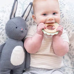 Our teethers are out of this world! Made with the softest silicone and natural birch wood that is sourced from the US. This teether is perfect for tiny fingers and soothing those sore gums. • Suitable for ages 4+ months • Does not contain PVC, BPA, Phthalates or other toxic materials • Complies with applicable ASTM, CFR & EU standards •Clean with mild infant safe soap or a wet wipe.