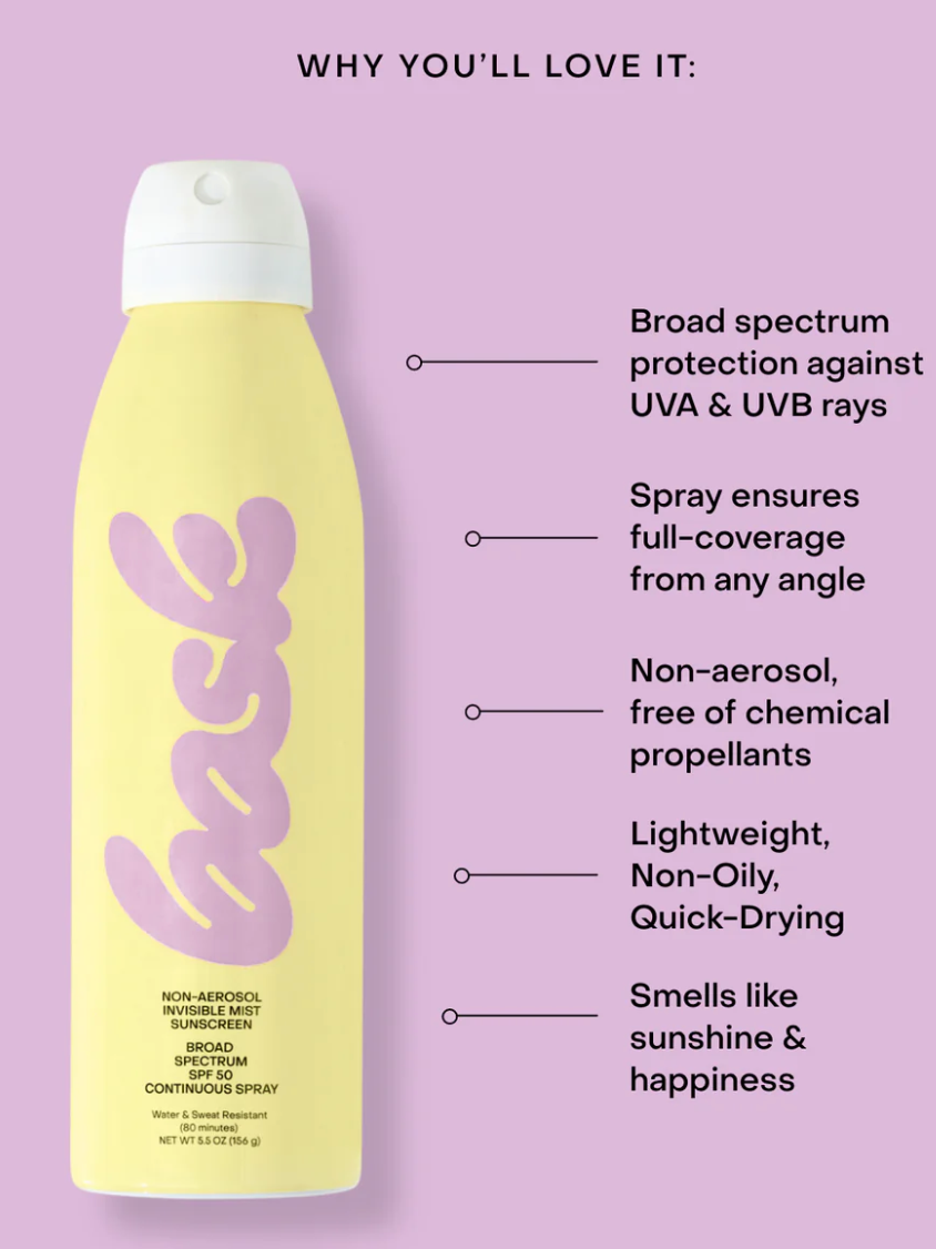 Breaking News: Bask SPF 50 Spray Wins 2023 SELF Healthy Beauty Award for Best Body Sunscreen.