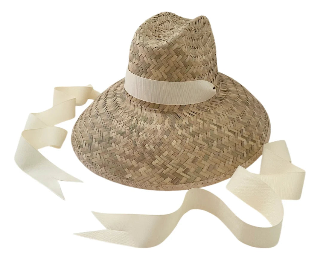 Our elegant take on the boho "lifeguard-style" surfer hat is woven with all-natural palm tree leaves.