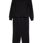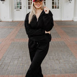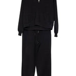 Luxe Comfort Meets Everyday Cool. Featuring a sleek top and perfectly matching joggers, this two-piece set blends loungewear ease with a polished, put-together vibe.