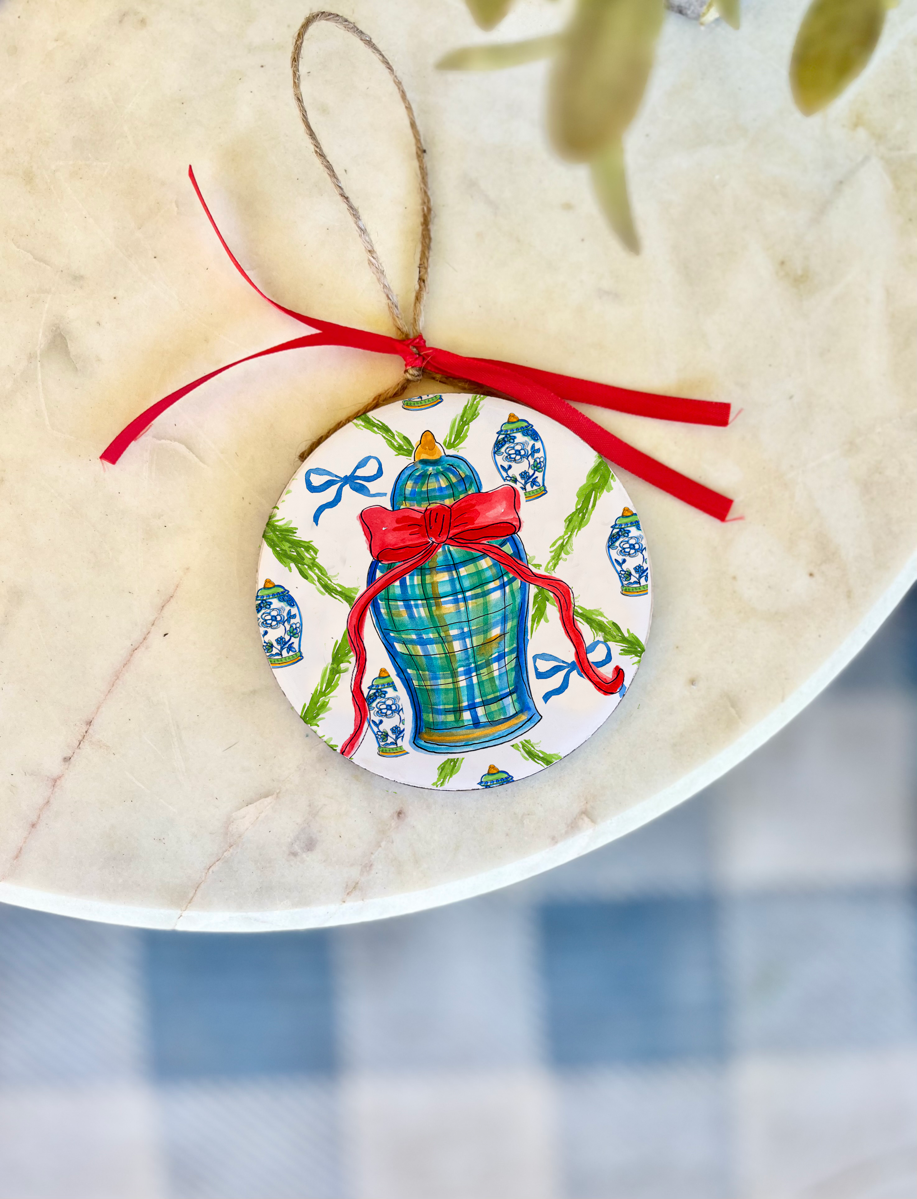 Looking for a special, one of a kind ornament? Our Blue and White Ginger Jar wood and enamel ornament is the perfect gift for decorating your tree! Use it as an ornament, a large gift tag, or to hang year round!