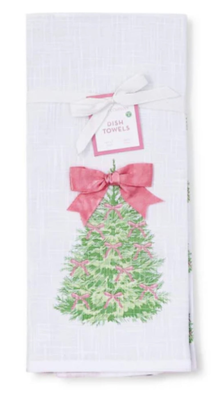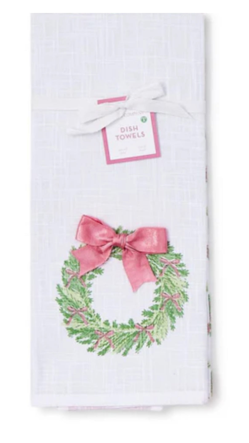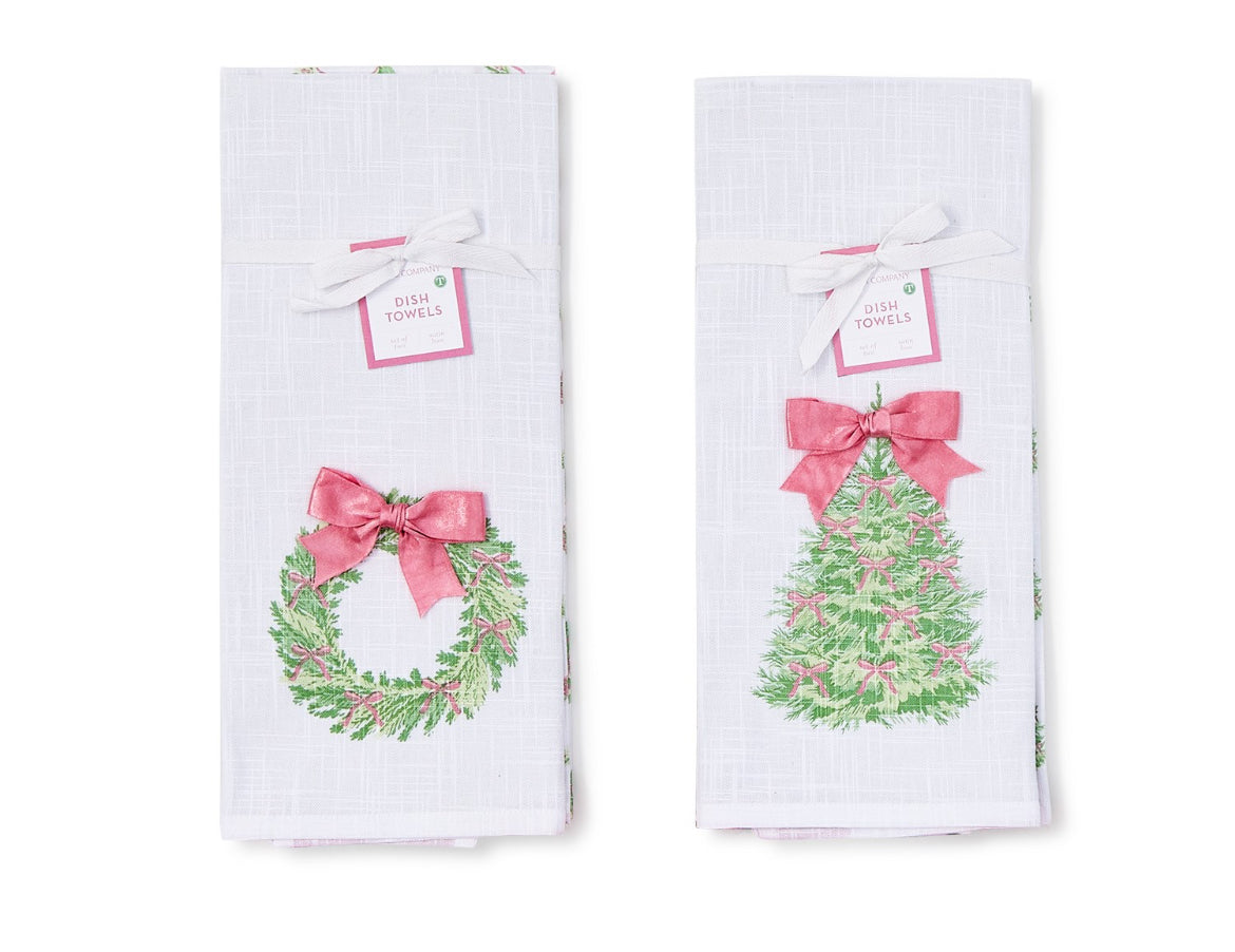 Bow-tiful Set of 2 Dish Towels with Satin Bow Accent Assorted 2 Designs
