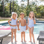 Our Boy's swim trunk is the best for all day in the sun. Fast drying with a chafe-less liner. Not only do these trunks look great, but they also offer a comfortable and secure fit for your child. The elastic waistband and drawstring ensure that the trunks stay in place during any water activity. Our chafe-less liners set our trunks apart from other brands. These liners are designed to prevent chafing and irritation, even during extended periods of activity. So your child can swim, run, and play in comfort without any discomfort or irritation.