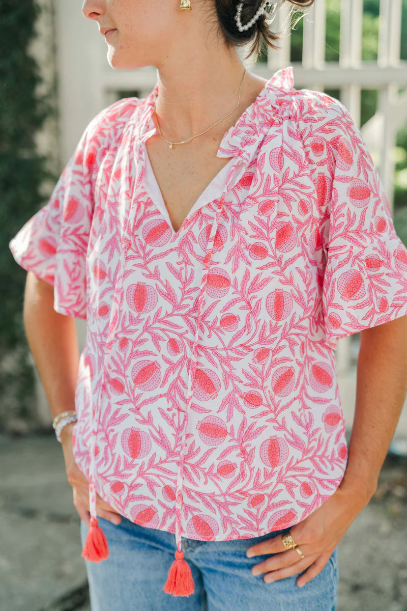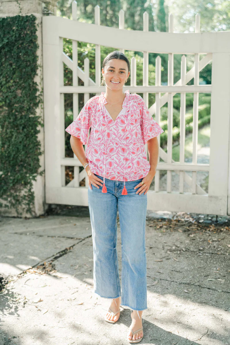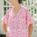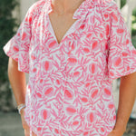 The Bristol Blouse features a flattering v-neck and flutter sleeves. This blouse offers comfort and style, perfect for any occasion. Step up your wardrobe game with this must-have piece.