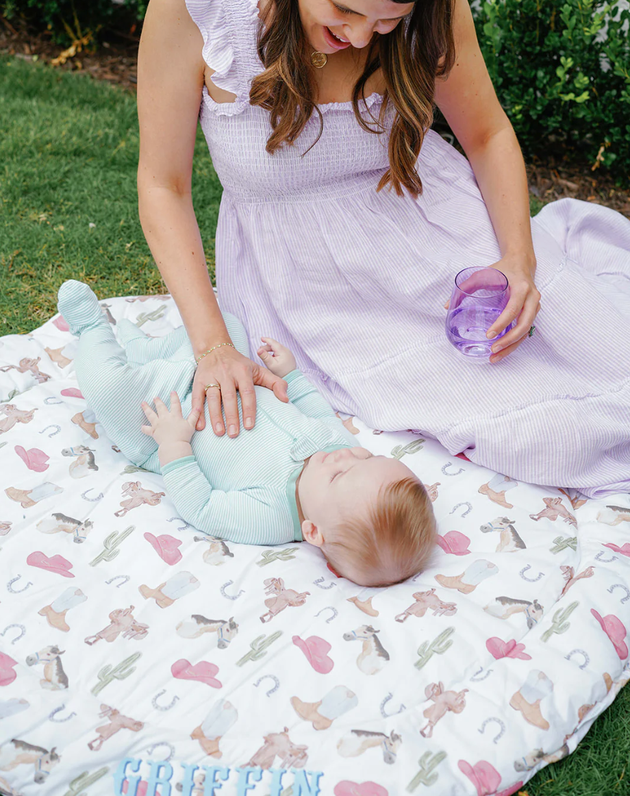 Coordinate The Play Mat with The Crib Sheet + The Sleeping Bag to make the perfect gift for families and friends of all ages!