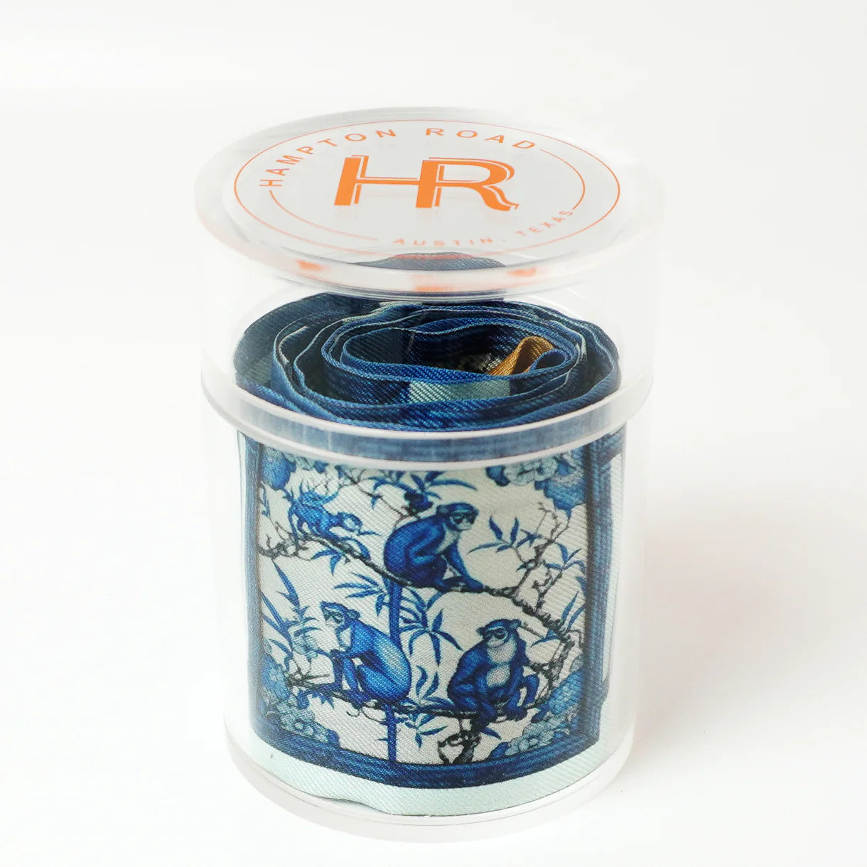 Hampton Road Silk Twilly Scarf with Gold Horseshoe Scarf Ring – Luxury Printed Scarf & Ring Set in Acrylic Gift Tube