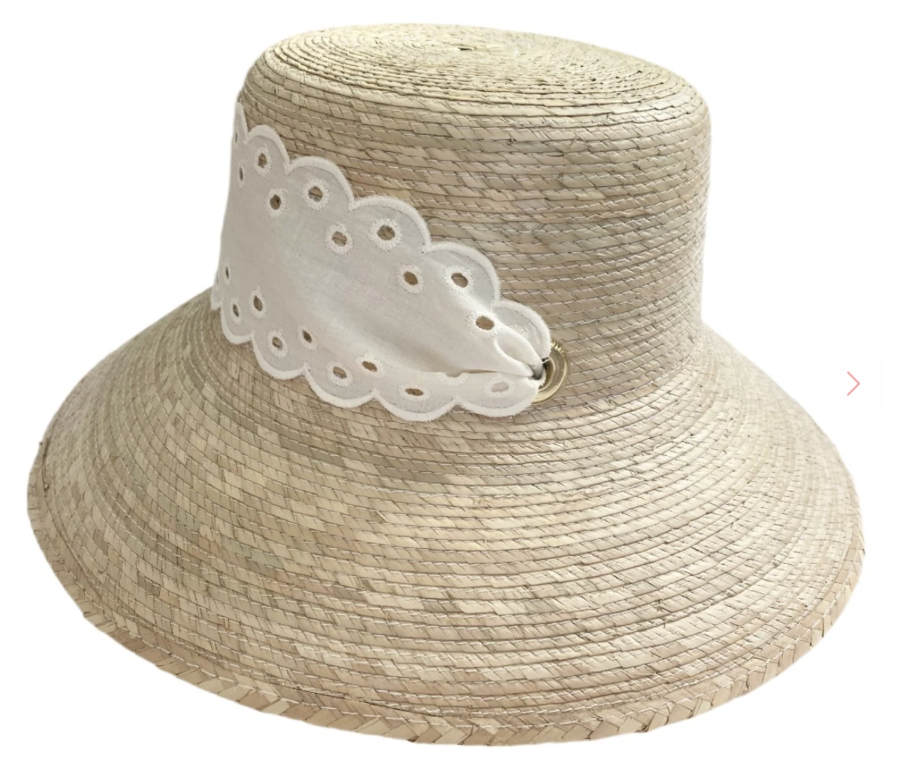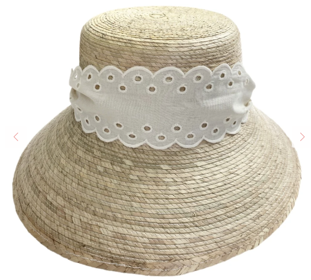 Sarah Bray Clematis Bucket Hat - Antique Eyelet Scalloped Lace Ribbon