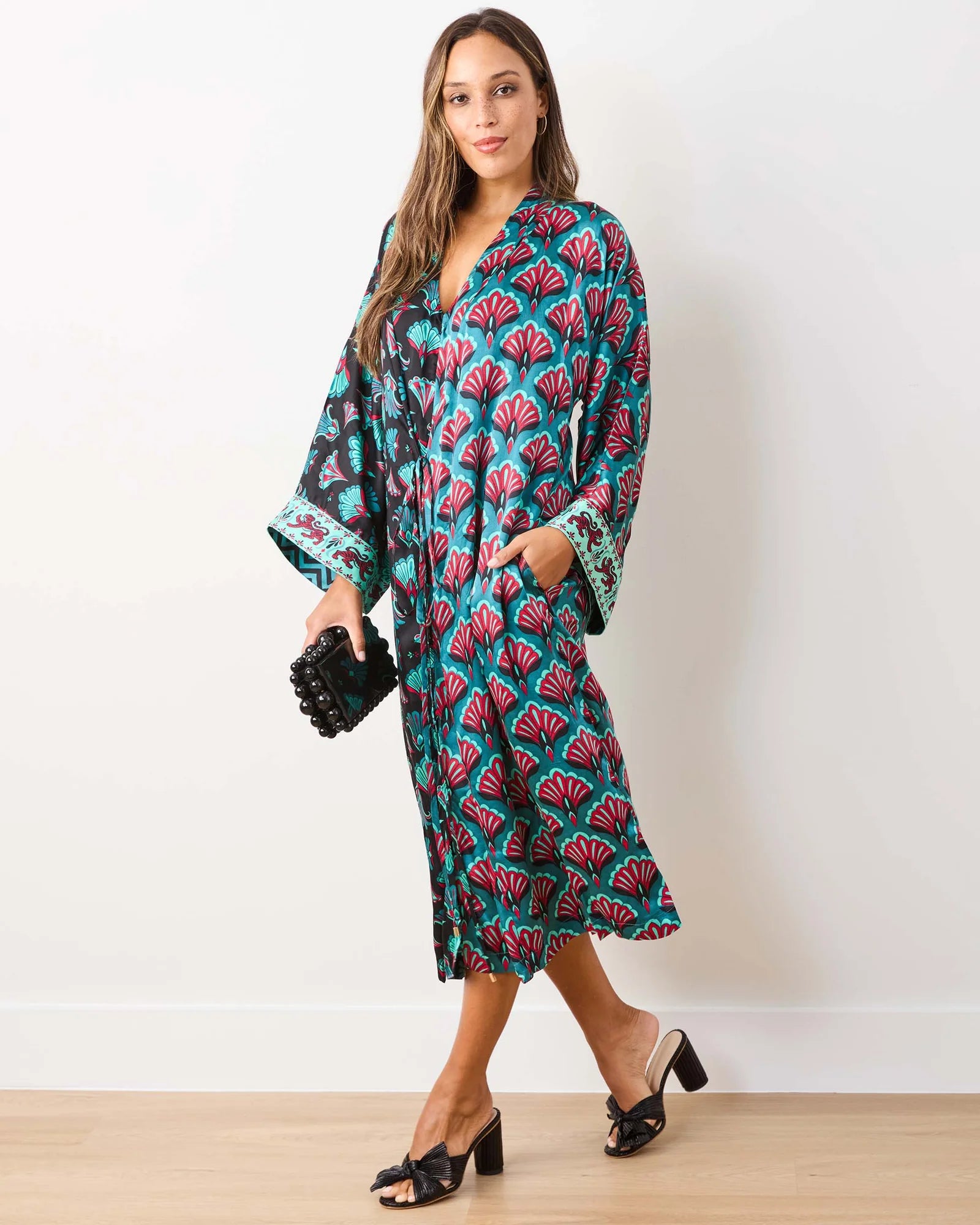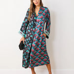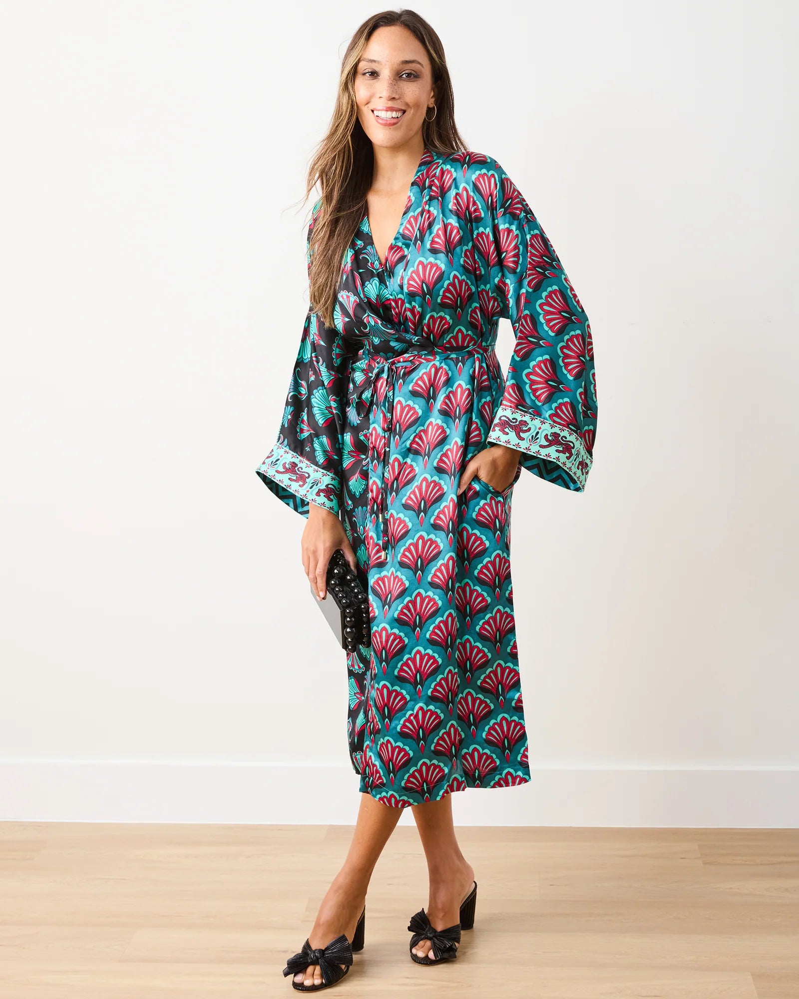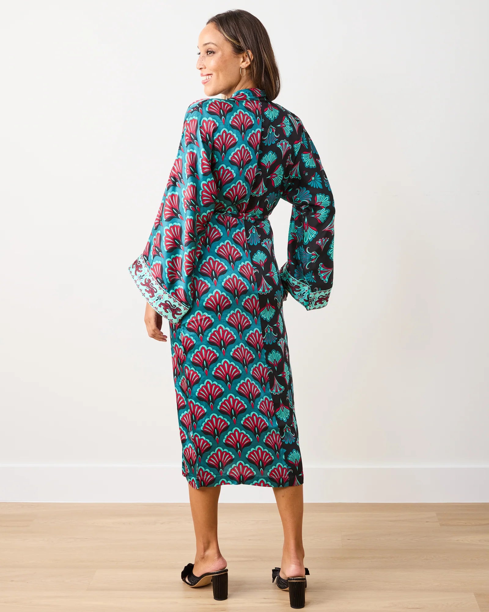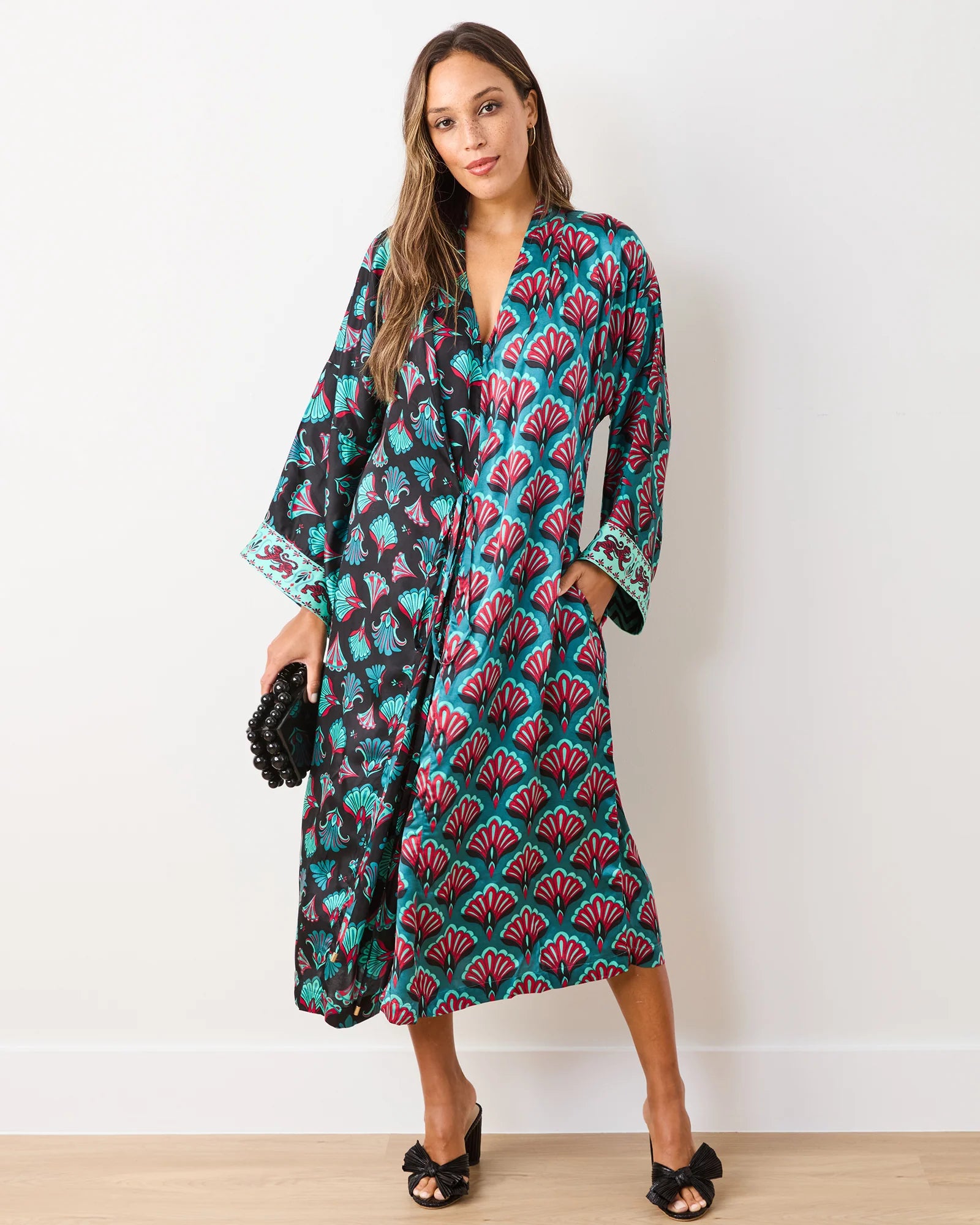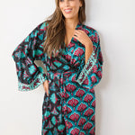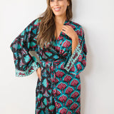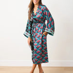 Made from a soft modal blend that has a luminous sheen and drapes beautifully. Designed in a unique wrap style that can be tied in a variety of ways.Lovingly designed in Philadelphia then hand screen-printed by artisans in India.