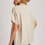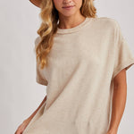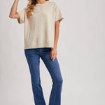 A crew neck knit T-shirt combines comfort and style effortlessly. Made from soft and breathable knit fabric, this versatile top features a classic crew neckline and a relaxed fit for all-day wear. Its minimalistic design makes it perfect for layering or wearing solo, pairing well with jeans, skirts, or shorts for a variety of casual looks. Whether you're lounging at home or heading out, this knit T-shirt is a wardrobe staple that adds a touch of effortless chic to any outfit. Model is 5'9" and wearing a S/M