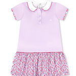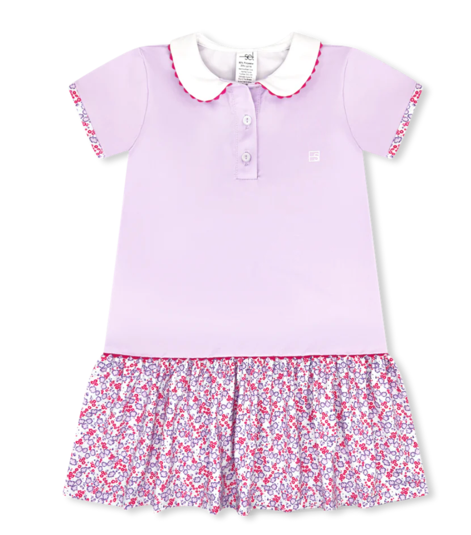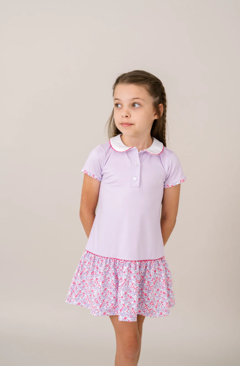 She will be ready to play her best game yet in our athleisure Darla Dropwaist Dress. Sporty, stylish, and oh-so-comfortable in Petal Purple athleisure with Flower Power athleisure skirt and Power Pink ric rac and welting.