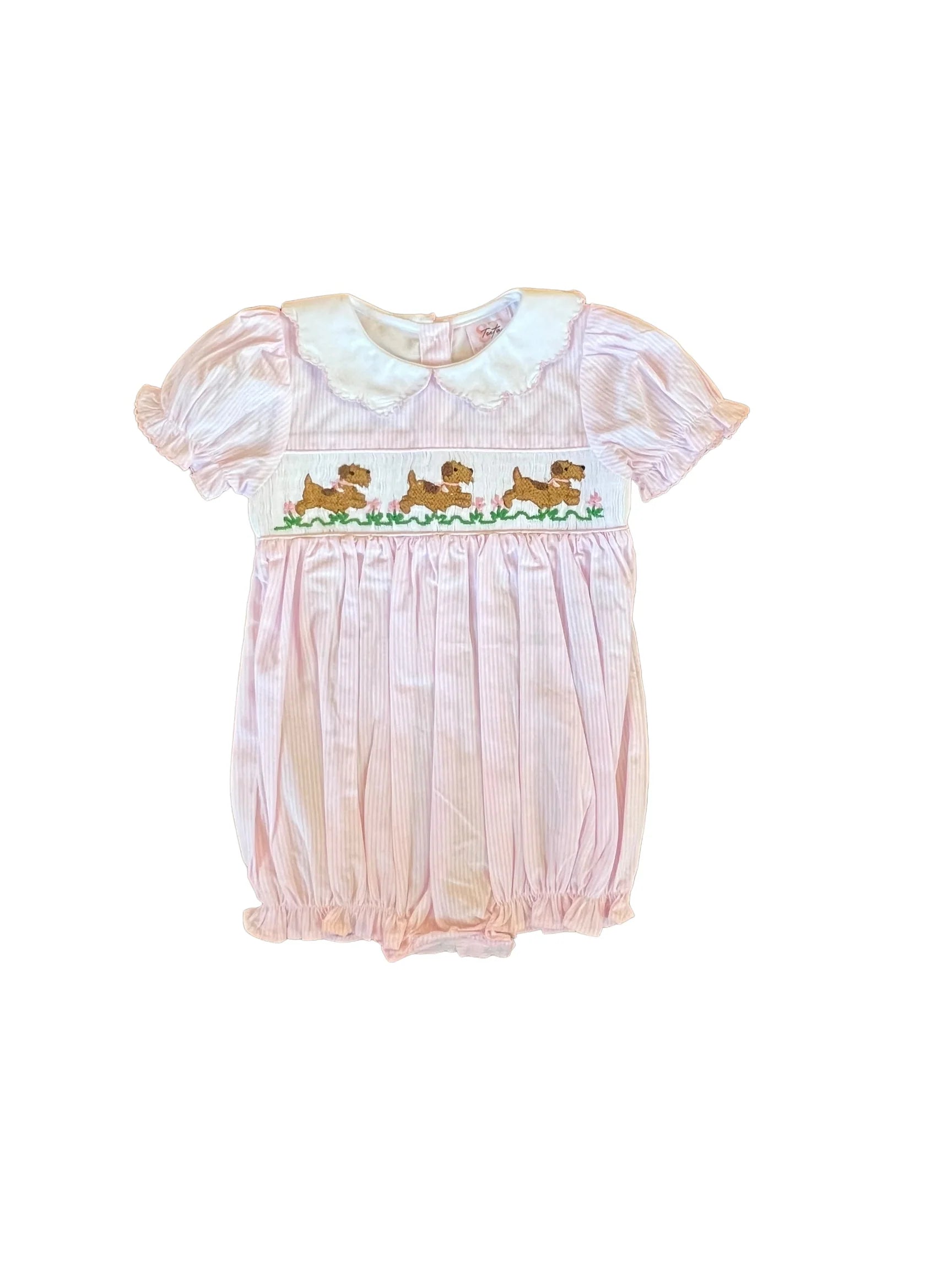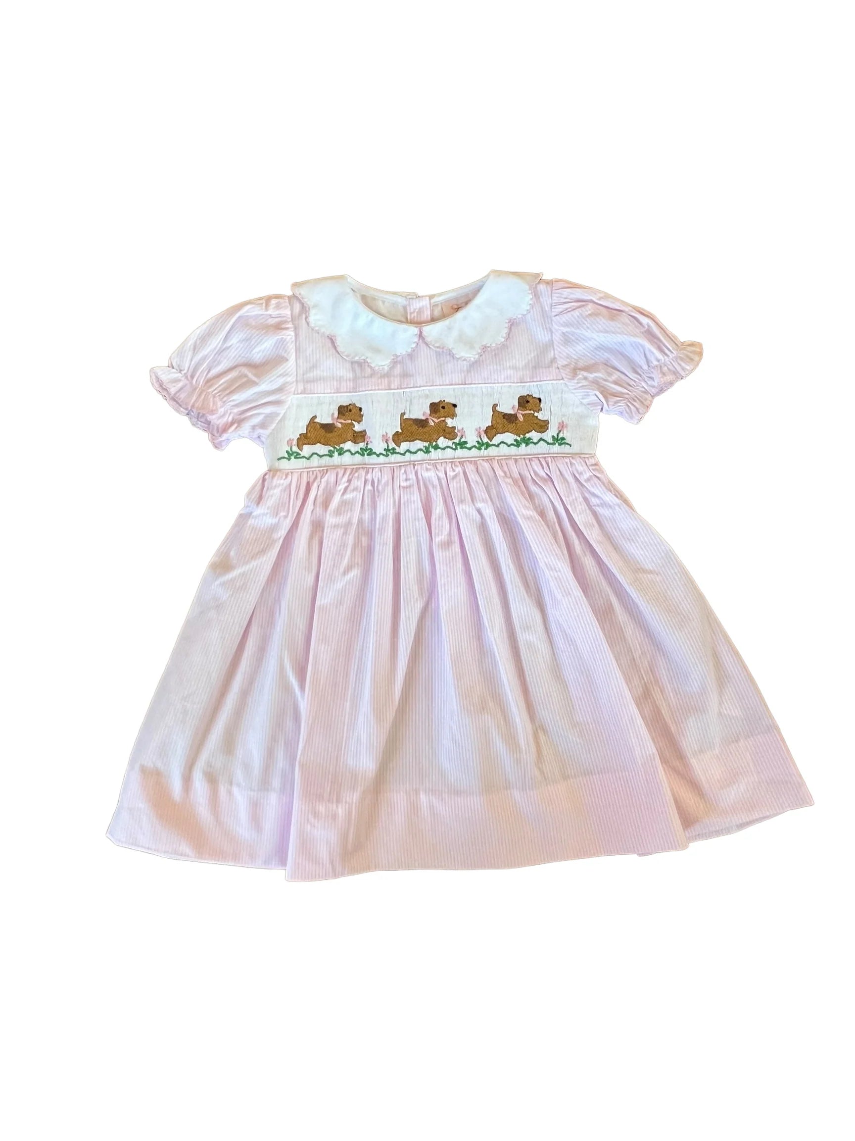 The most classic meets doggy. This doggy dress has a matching Doggy Bubble for younger sis! Works year round with a cardigan and tights or can be worn Spring and Summer by itself.