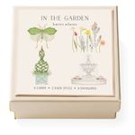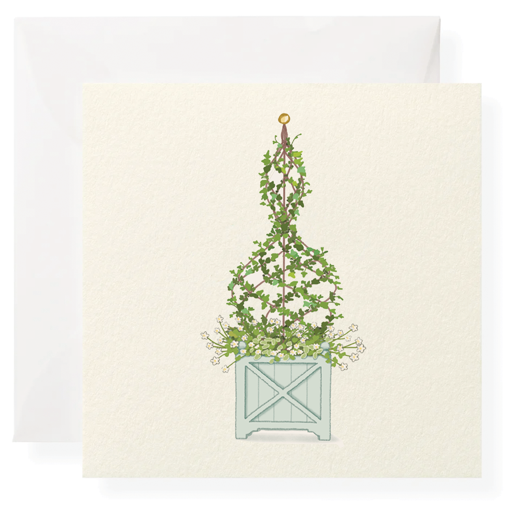 Our English Topiary Gift Enclosure is printed and hand-glittered in Memphis, TN. Hand crafted artwork, full color ink printed on natural white paper, foiled, hand-glittered, and paired with a vellum envelope. Book-folded enclosure card, blank on the inside.