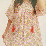 Thid Floral Dress perfectly blends summer’s carefree spirit with cozy fall vibes. Bursting with lively floral patterns and playful tassels, this dress dances with every step you take. Its lightweight fabric keeps you cool on warm days, while the longer sleeves offer a hint of autumn warmth. Whether you’re twirling through a garden party or strolling on crisp fall evenings, this dress adds a vibrant touch to your wardrobe that’s full of charm and fun. Embrace the season’s best with a piece that’s as spirited as you are!