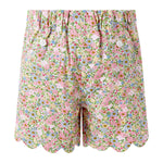The sleeveless top features a softly flared silhouette and a statement scalloped neckline, adding a refined yet whimsical touch. Coordinating scalloped-hem shorts complete the look, creating a perfectly polished set that feels both special and effortless. Light, breathable cotton ensures comfort on warm-weather days, while the matching print offers a cohesive, heirloom-inspired finish.