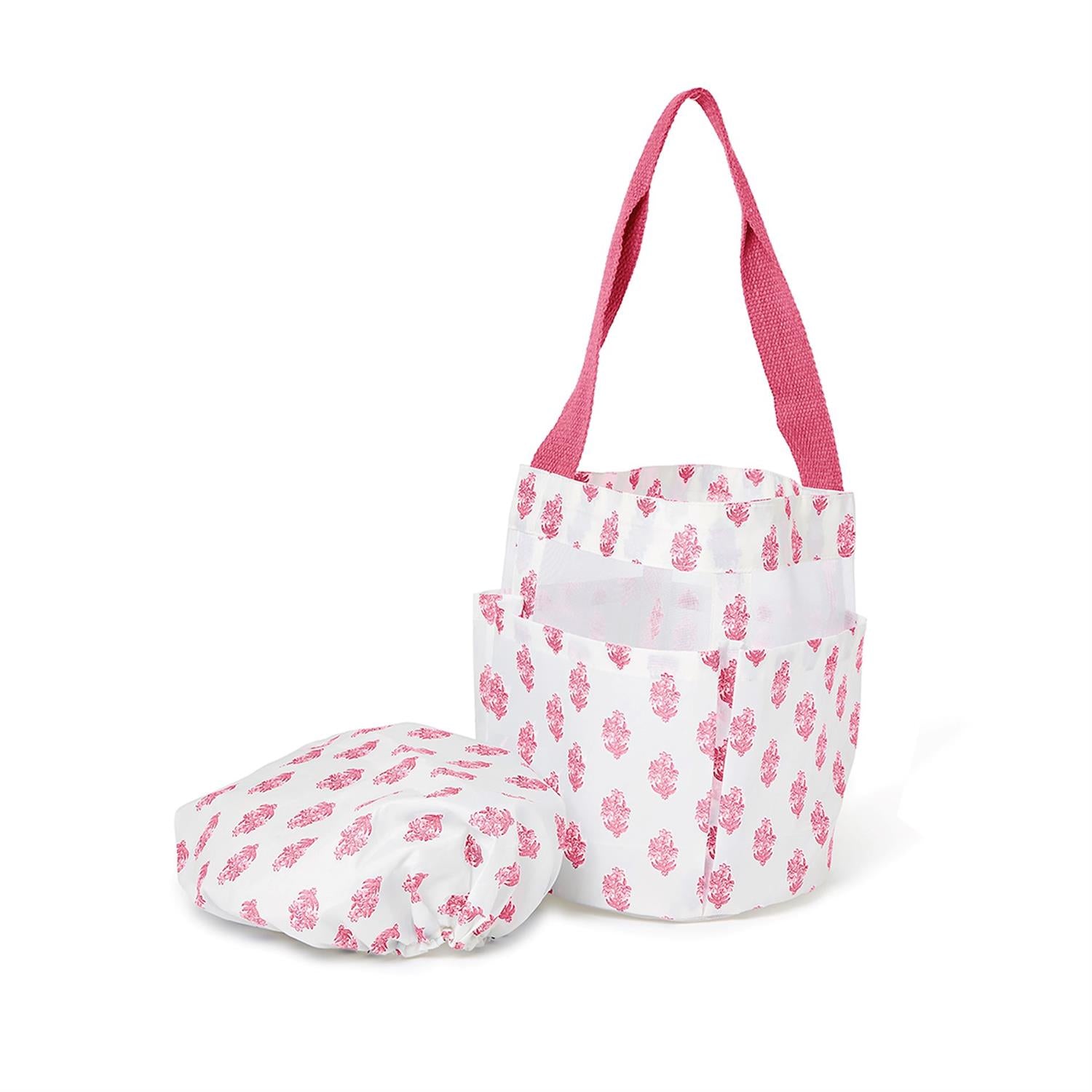 Transform your shower into a luxurious oasis with the petal party toiletry tote and shower cap set. Available in two vibrant floral color options, Cerise Pink and Lapis Blue, this set is perfect for adding a pop of color to your bathroom dècor. Perfect for at home use or in your dorm room. Handcrafted from high quality polyester, the caddy features ample storage space to keep your shower essentials organized. The matching shower cap adds a touch of elegance and convenience to your self care routine.