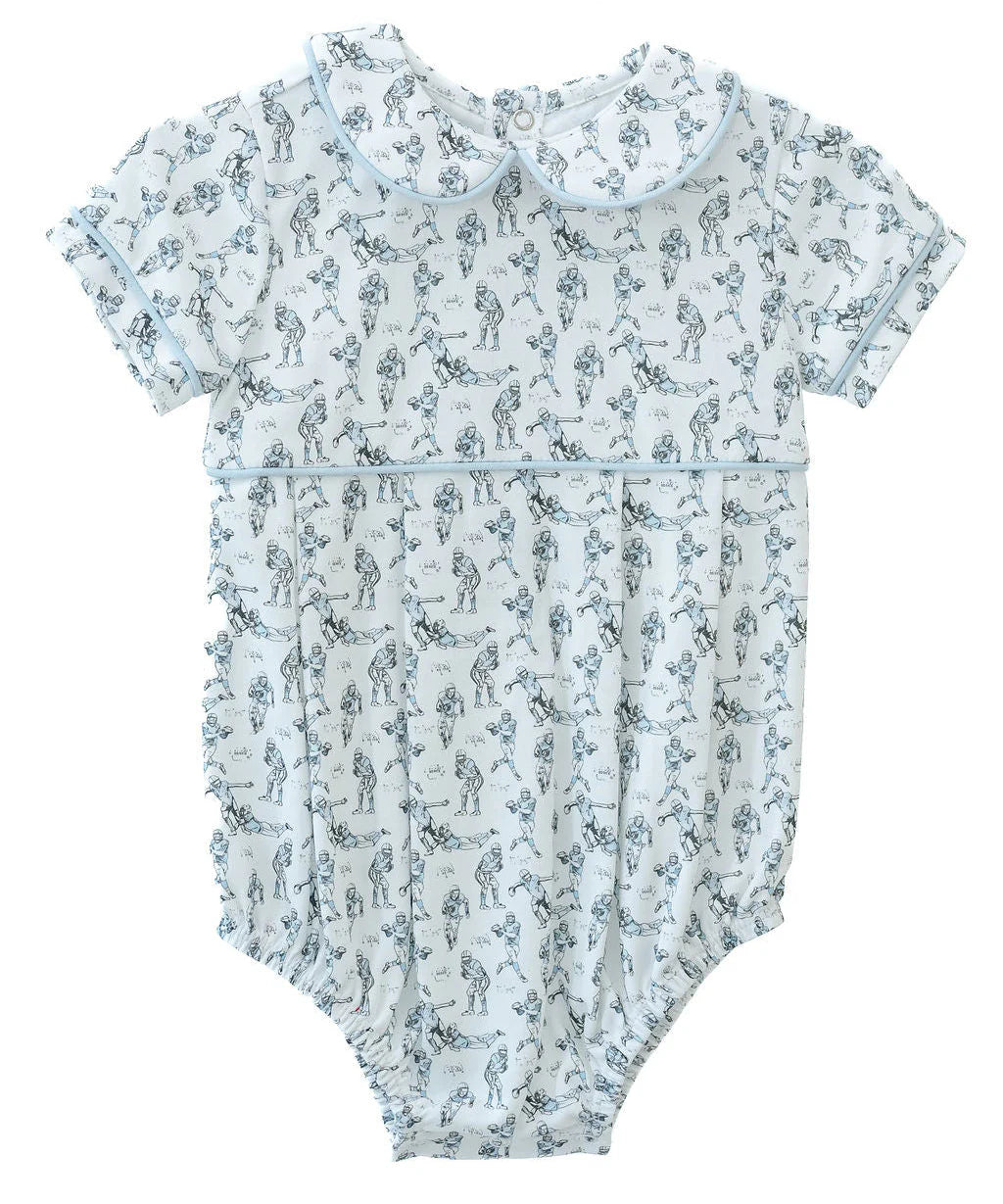 Get your little one ready for game day with our Football Player Print Pima Cotton Outfits! Made from 100% soft pima cotton, these stylish outfits feature a football player print in light blue, perfect for showing off his love for the game. These outfits are a must-have for tailgates, game days, or any occasion that calls for a little extra team spirit.