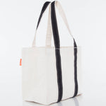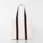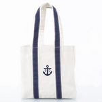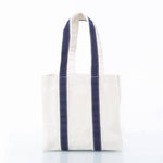 Closure Type: Open top. Size: 9.5" H x 10.25" x 7" D. Ship Weight: 1.75 Material: 15 oz Canvas. Shoulder Strap or Handle: Contrasting color handles with a 9" drop. Internal Details: Removable velcro divider for bottles and reinforced bottom support. Fits up to 4 standard wine bottles.