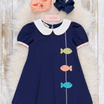 The Gingham Embroidered Fish Dress is a splash of 2026 summertime charm! Featuring classic gingham fabric and adorable embroidered fish details, this dress from Marie Nicole Clothing is perfect for warm-weather adventures. Lightweight and comfy, it’s ideal for beach trips, playdates, or simply soaking up the sunshine in style. * Fits true to size. * 97% Cotton / 3% Spandex * Combo: 95% Polyester / 5% Spandex * Accessories sold separately. * Suggested bow color: #17 or #56 * Import. Island is 39 lbs and 43 inches tall wearing size XL (5 YRS). Crimson is 33 lbs and 37 inches tall wearing size S (2 YRS). .