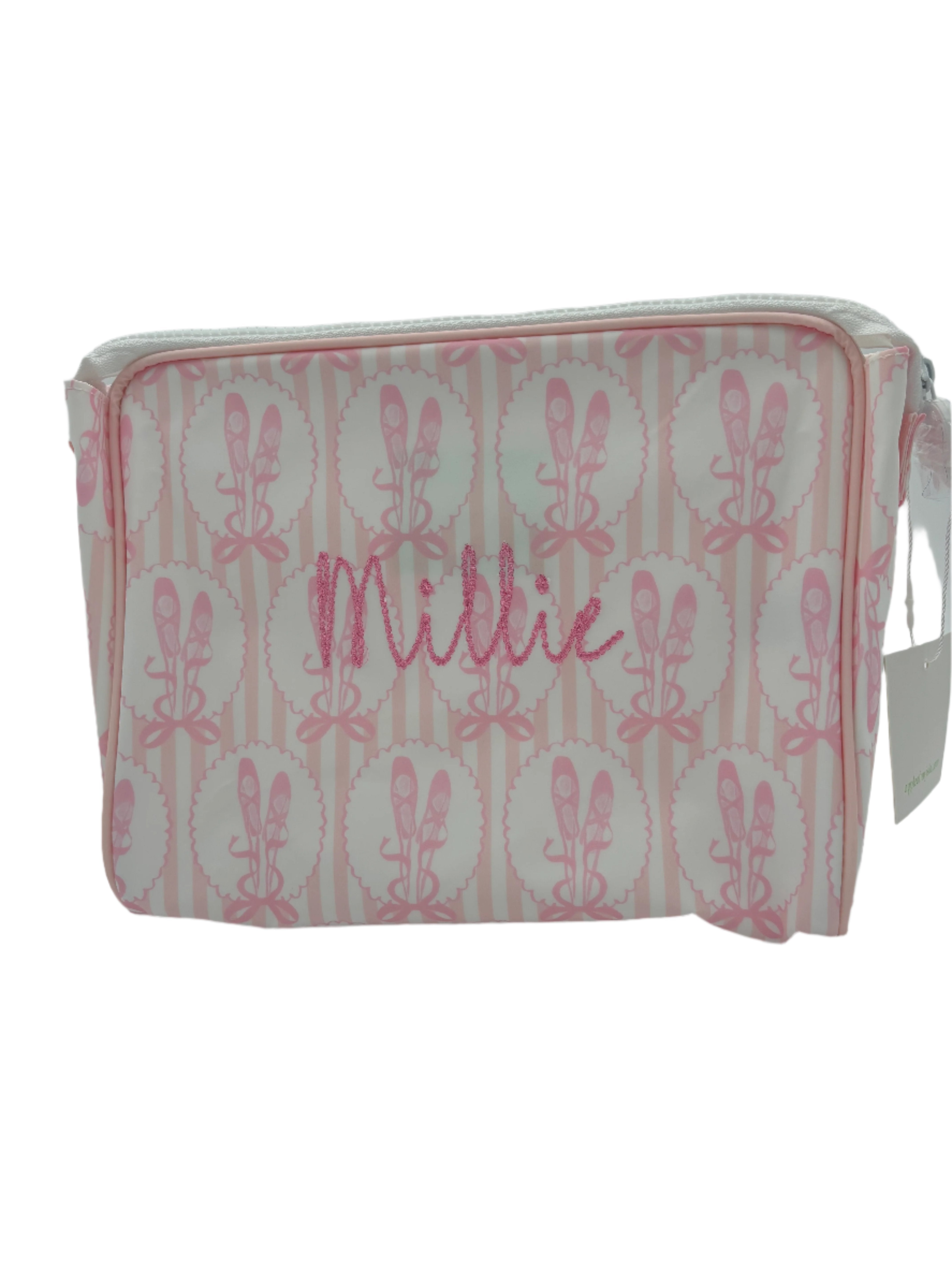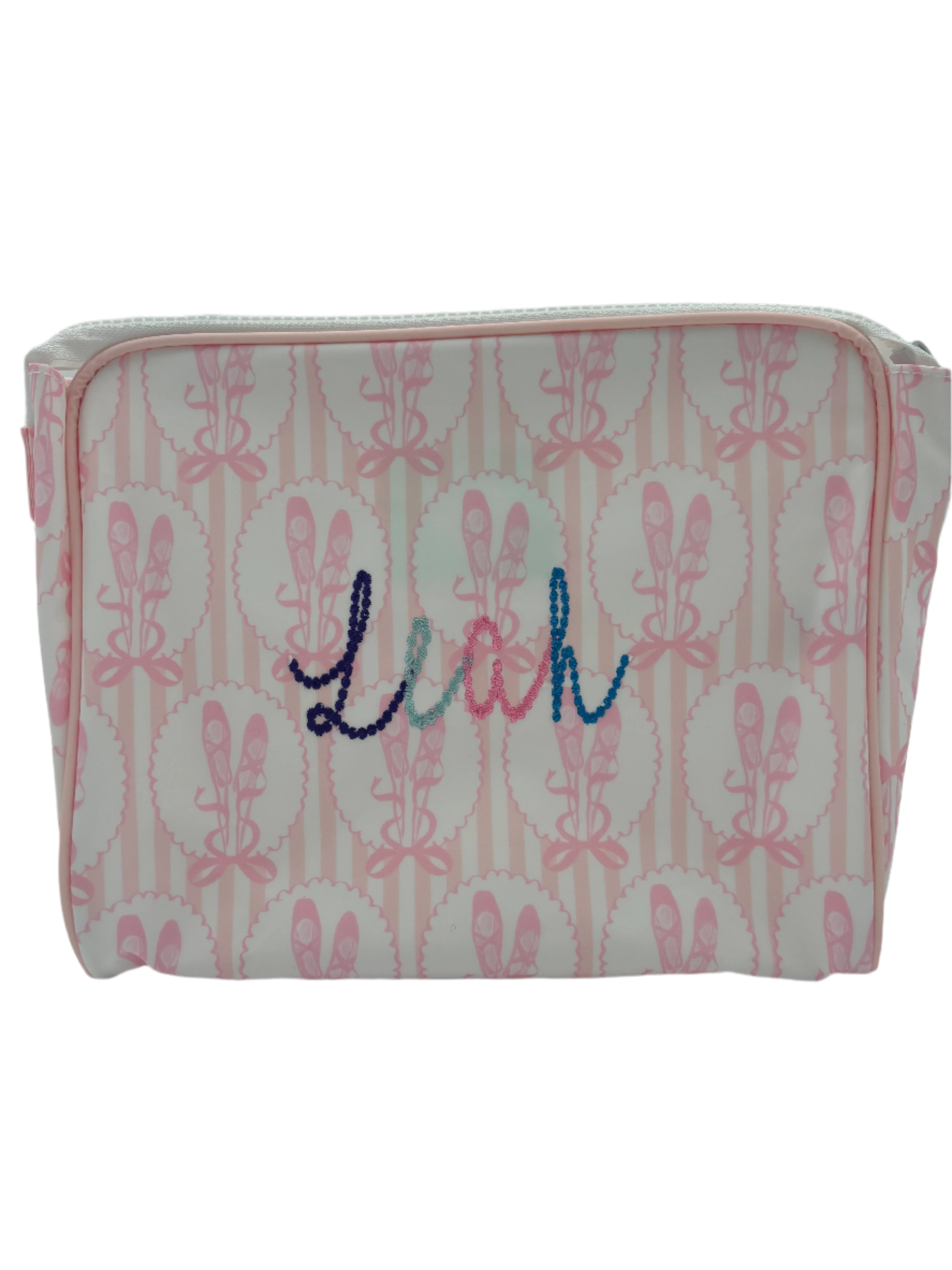 The Go Bag is just that - a bag for your things on the go! Diapers/wipes, makeup, toys, sunscreens, pacifiers, all the things organized to grab and go.