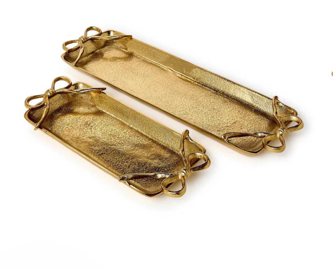 Two's Company gold bows serving trays. 2 sizes to choose from, Large or Small. Not sold as a set!