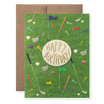 Our Golf greeting card is printed and foiled in Memphis, TN. Full color ink printed on natural white paper, letterpress printed in gold foil, and paired with a kraft envelope. Book folded card, blank on the inside.