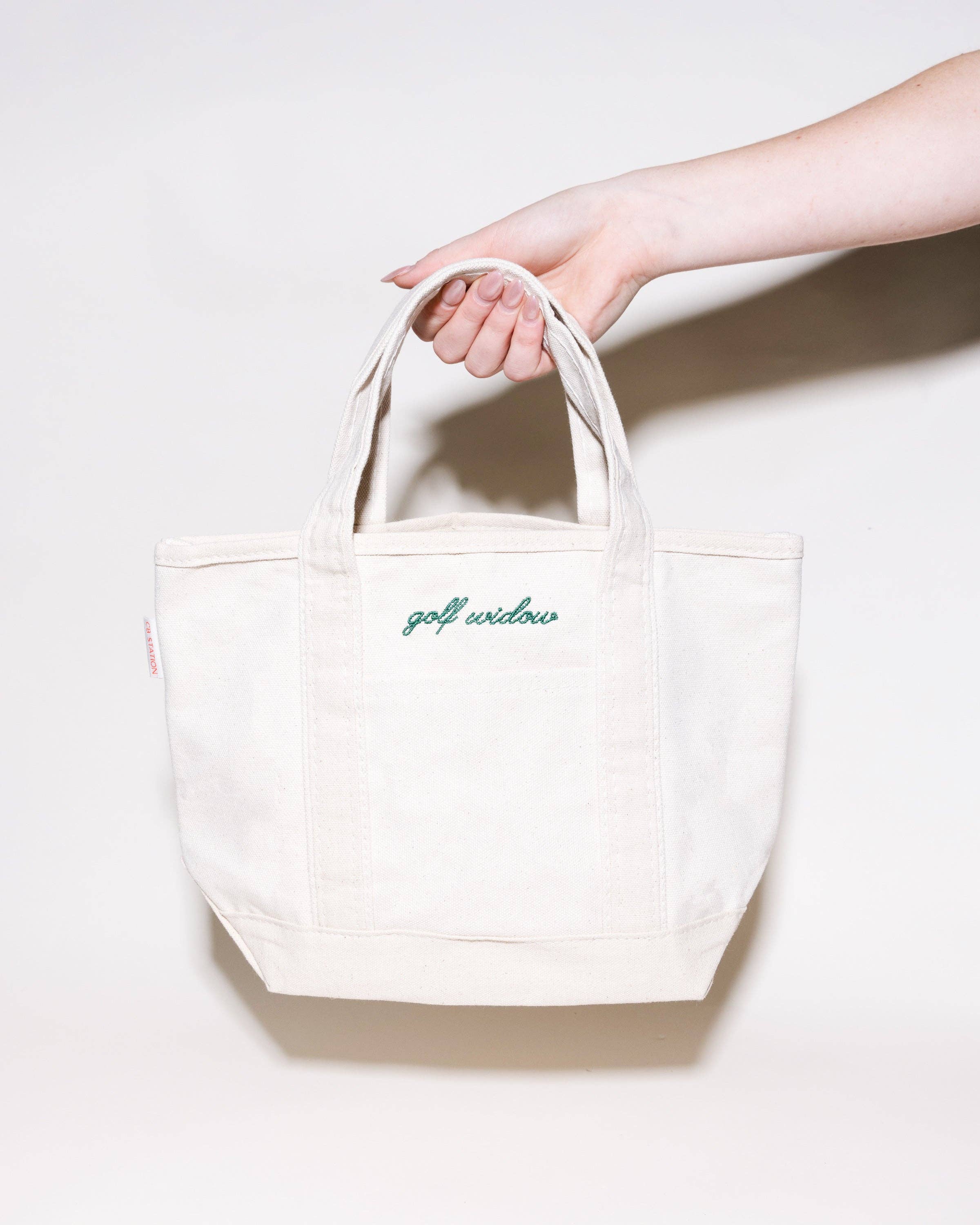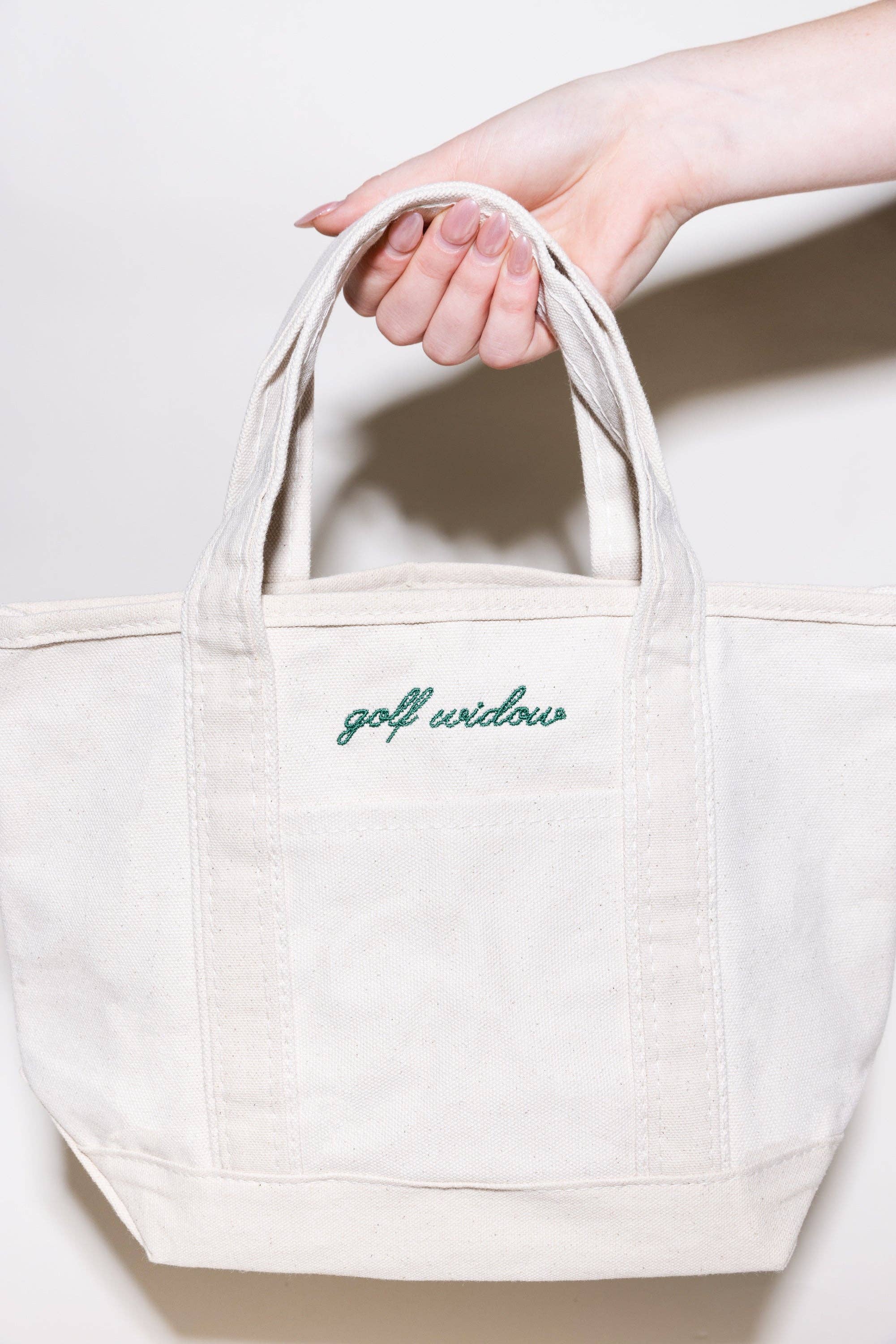 For those days when you’re flying solo while they’re out on the links, the Golf Widow Handy Open Tote is your go-to bag for everyday adventures and quick outings. Made from sturdy 18 oz canvas, this open-top tote offers ample room for your essentials with an exterior pocket for easy access. Whether you’re treating yourself or gifting a friend, it’s a charmingly playful yet practical statement piece that celebrates the independent "Golf Widow" spirit.