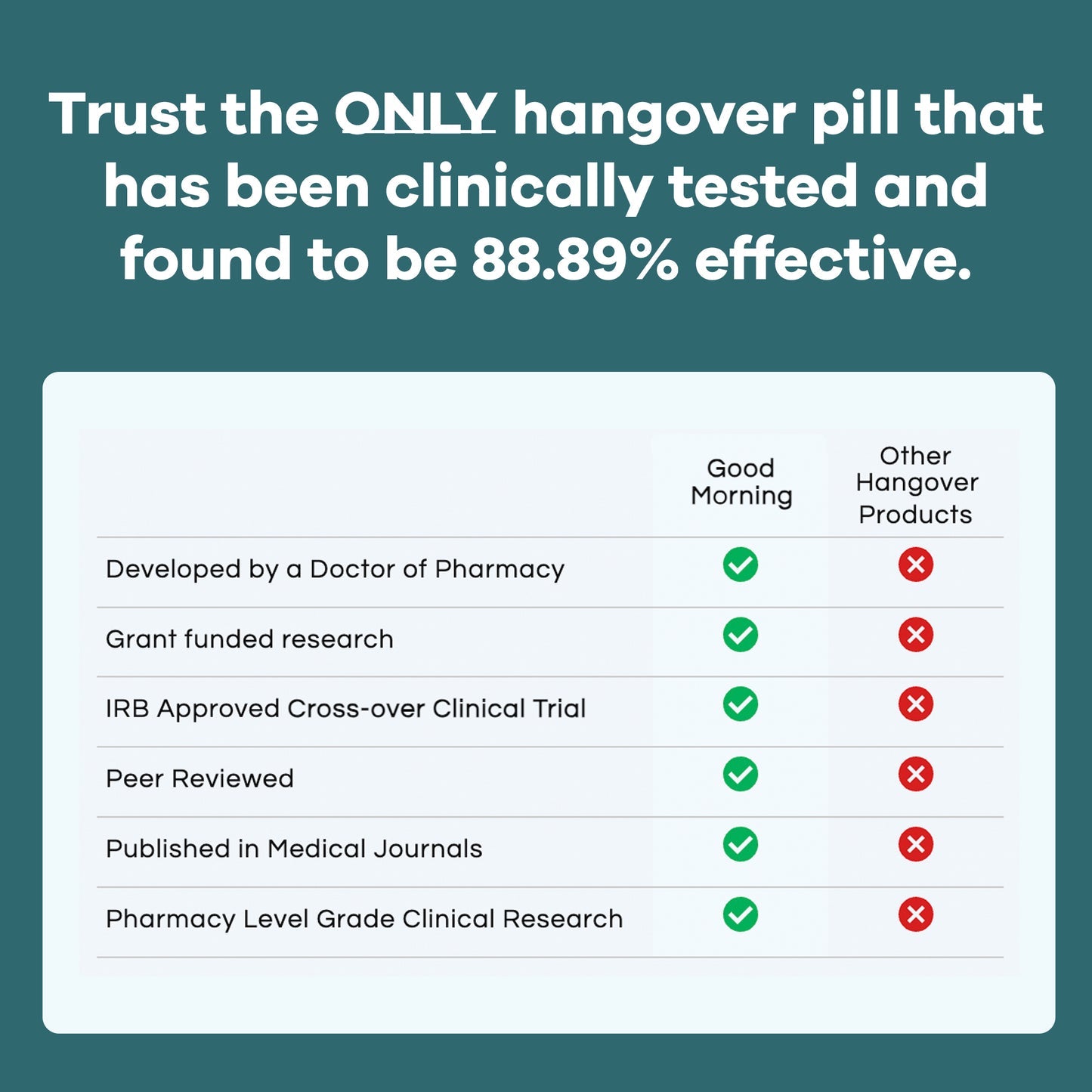 You’re not yourself when you’re hungover. So wake up feeling fresh with a dose of Good Morning and get the relief you need.