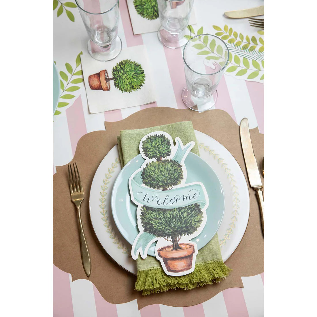 This Topiary Accent is the result of our collaboration with Elizabeth Foster, and pairs beautifully with items throughout our collection. Write a welcome message or your guest' names across the ribbon for an extra personal touch at the table!