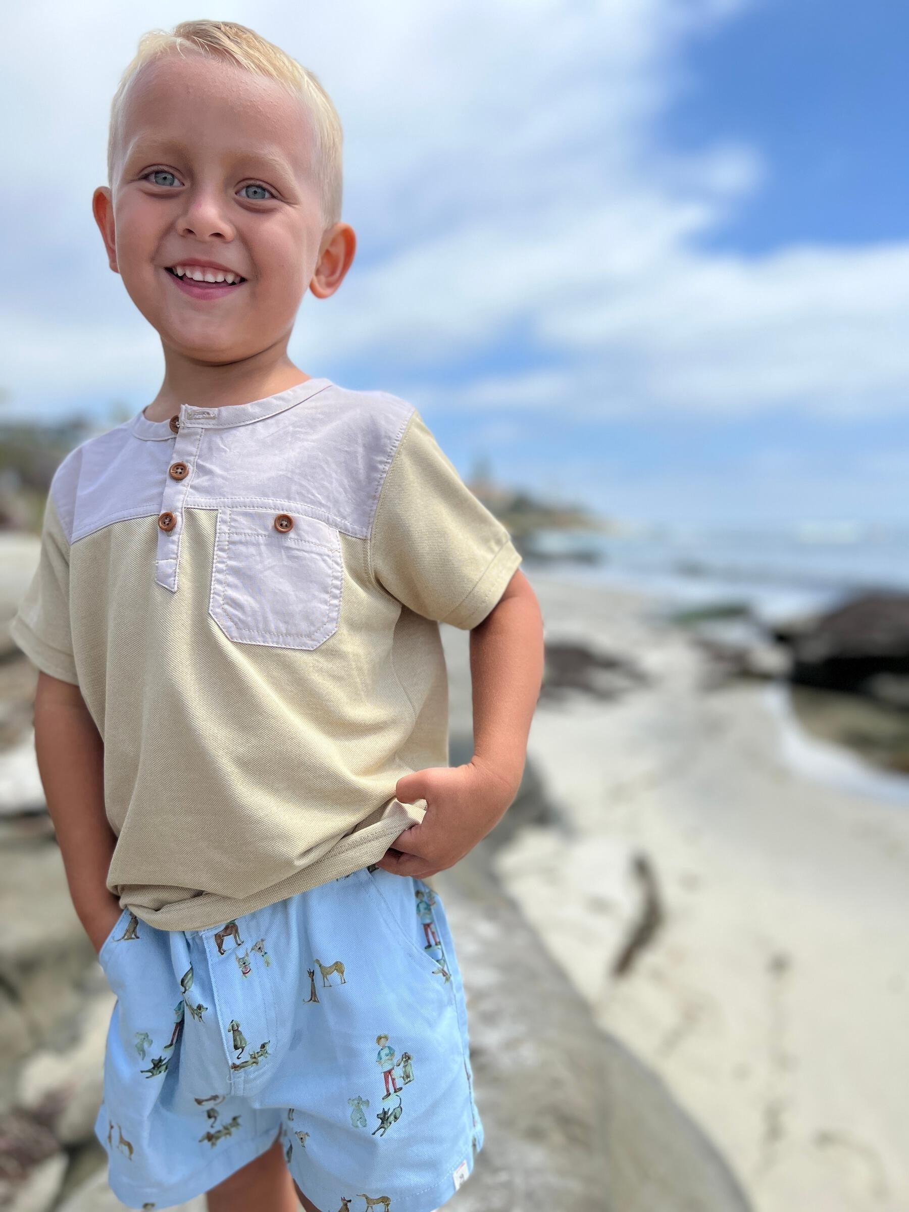 Essential woven shorts that no little man should be without! Perfect with a Tee or dress up with a shirt. Summer ready outfit for any and every adventure. Looks great with our Cream and Navy Sweaters!