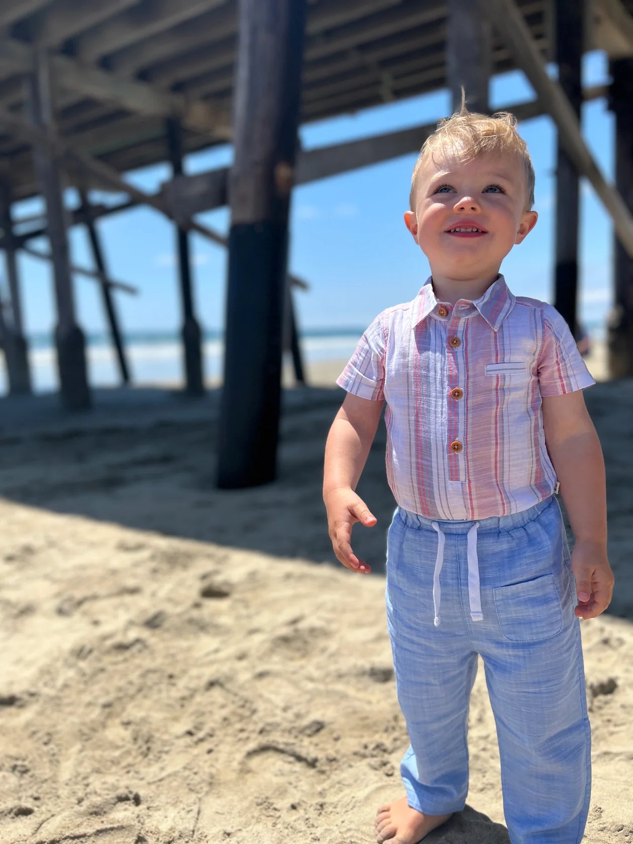 Dress your little one in cosy comfort with our Bosun blue heathered pants! Made from soft and breathable cotton, these pants are perfect for everyday wear. We like these on the beach for little babies too so they have covered legs from the sun!