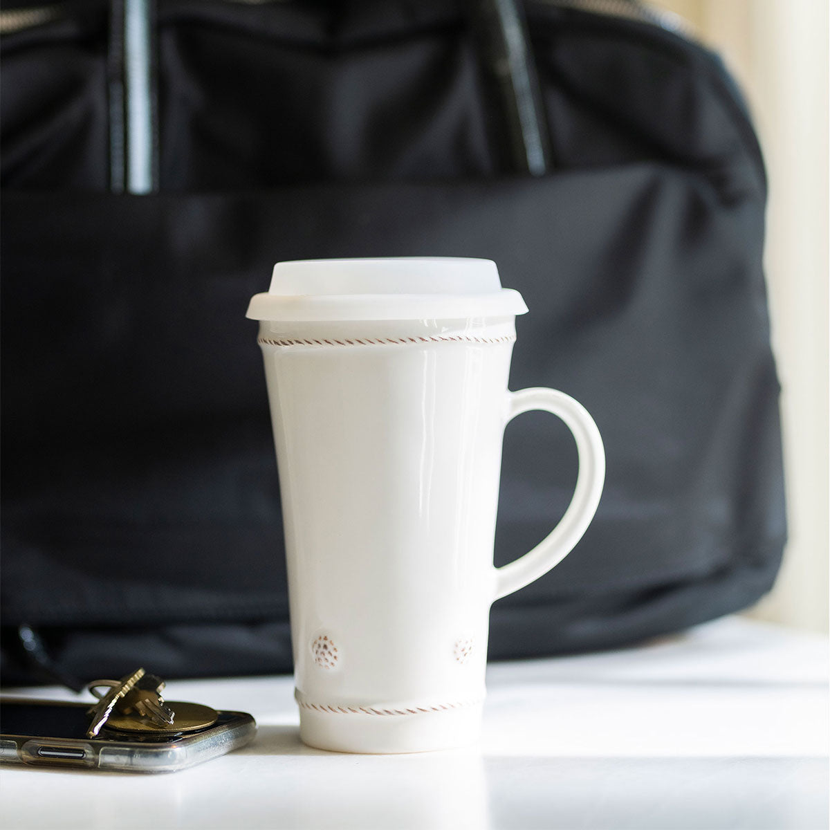 his charming large mug from our Berry & Thread collection invites us to forgo paper cups and plastic lid waste. Thoughtfully handcrafted with a handle that fits in most cup holders and accompanied by a silicone lid. Whether on the go, or nestled at home, our large lidded mug is a great companion to your favorite java or tea beverage.