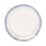 Rimmed with radiant stripes symbolizing the endless paths of awaiting journeys, this versatile dinner plate is up for every culinary adventure, from morning to night. With a fresh whitewash glaze and Delft blue palette, mixing and matching with other collections - and infinite occasions - is a breeze.