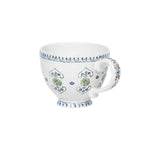 A fresh take on Seville's romantic, folkloric florals, this generous breakfast cup is designed for coffee, tea, and anything else delicious and soothing. We especially adore the sculptural handle, tiny foot and intricate trim adorning the top and bottom.