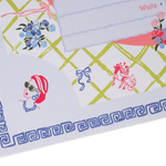 Pair your tiles with something pretty. Our Lattice Mat is designed to complement the Miss Darling Tile Set, with an all hand-drawn bamboo lattice design, floral accents, and a classic Greek Key border. Simple instructions, “Play Right,” “Walls Left,” and Charleston reminders, are built right in to help new players feel at home. Now made from 100% natural rubber, our mats are more durable, flexible, and easier to smooth than neoprene. If creases form, just lay it flat for a day or two and they’ll disappear. The thick rubber backing keeps your mat in place through every shuffle and win. Natural rubber is also a renewable, biodegradable material with a lower carbon footprint and fewer toxins than neoprene—so it's better for your table and the planet. 34" square.