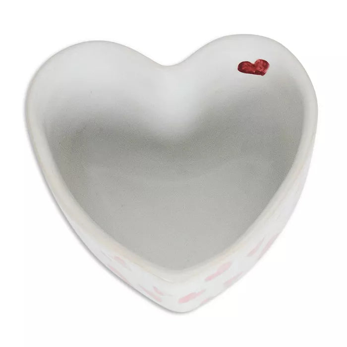 Pretty in pink and perfect for baking with your sweetie pies or a romantic dinner for two, this versatile heart-shaped ramekin is sprinkled with hand-sketched hearts like confetti to celebrate love every day. Perfect for individual servings of sweets to soufflés, holding trinkets, and displaying treats.