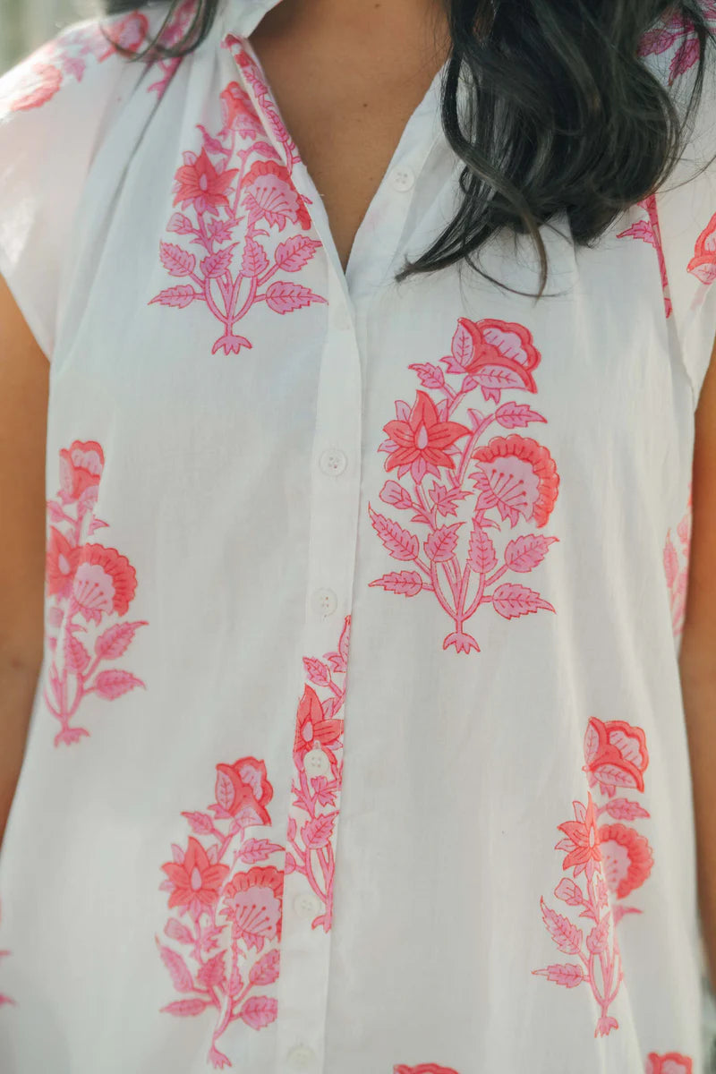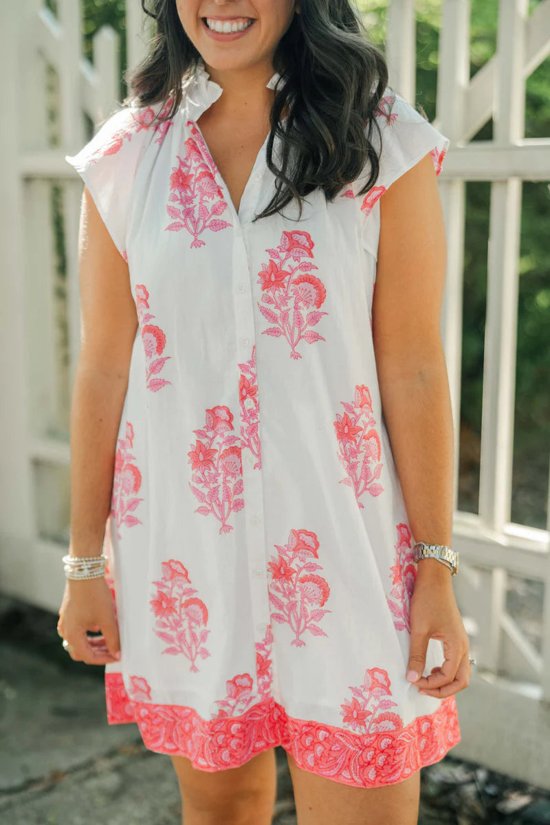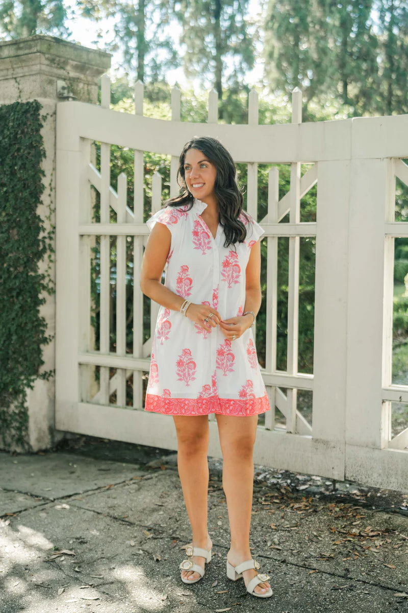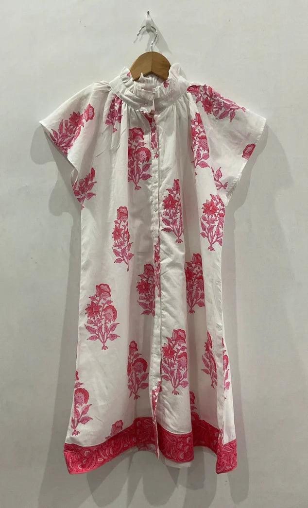 Introducing The Lucia, your go-to warm weather dress for a day at the beach or a night out on the town. With a ruffle collar and contrasting hem, this loose fitting short sleeve top is both stylish and comfortable. Complete with a button-down front, Lucia is the perfect addition to your wardrobe for any occasion.