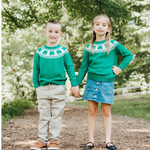 Lucky Clover romper and matching big sibling sweater.
