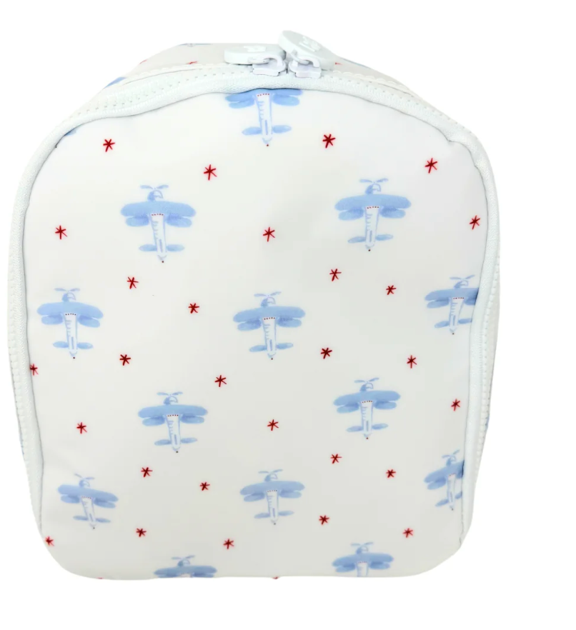 Bring It lunch bag is insulated and roomy for any Bento-style lunch box, baby bottles and beverages too! Fits in all Bobbie's Shoppe backpacks and has a top handle loop for easy carry. The signature 2-way zipper design is simple to open and the inside front panel opens to become a surface to place your meal on.