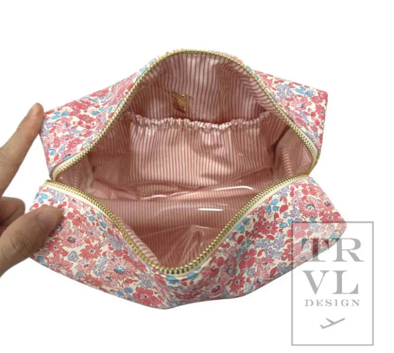 Introducing the NEW everyday cosmetic bag - crafted in vegan Saffiano leather with an interior made with our coated liquid gold liquid liner that is completely wipeable - built for the beauty product lover!