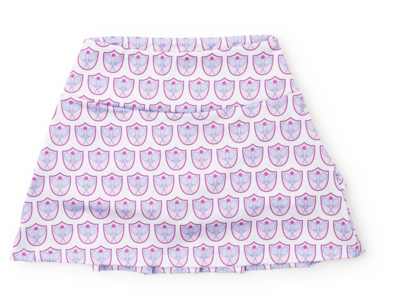 Girls' tiered performance skirt with built in shorts. Made from 92% polyester, 8% Elastane. Moisture-wicking and quick-drying.