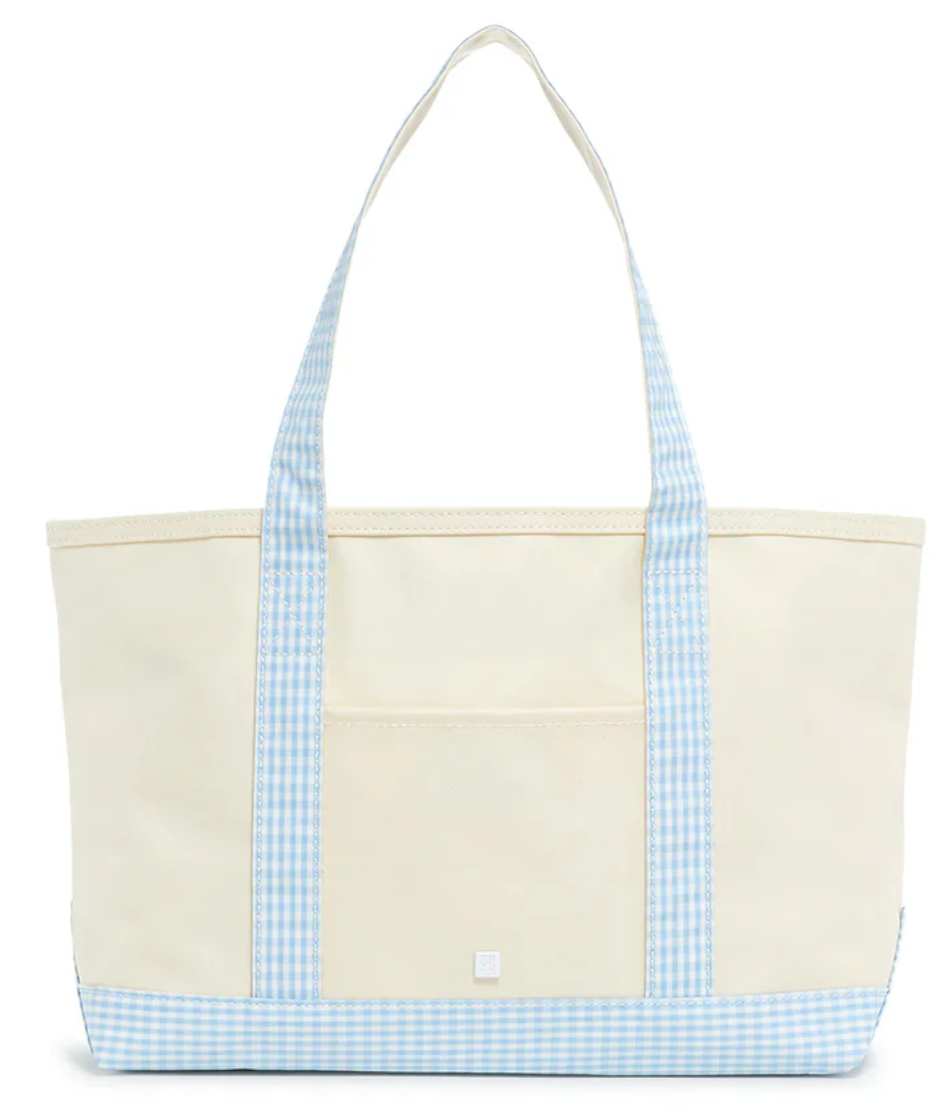 Coated canvas – is perfect for day-to-day, beach, groceries, and getaways. This roomy interior can carry a 17” laptop, change of clothing and more. Coating that is wipeable and machine washable Includes front exterior pocket and inside key clip strap.