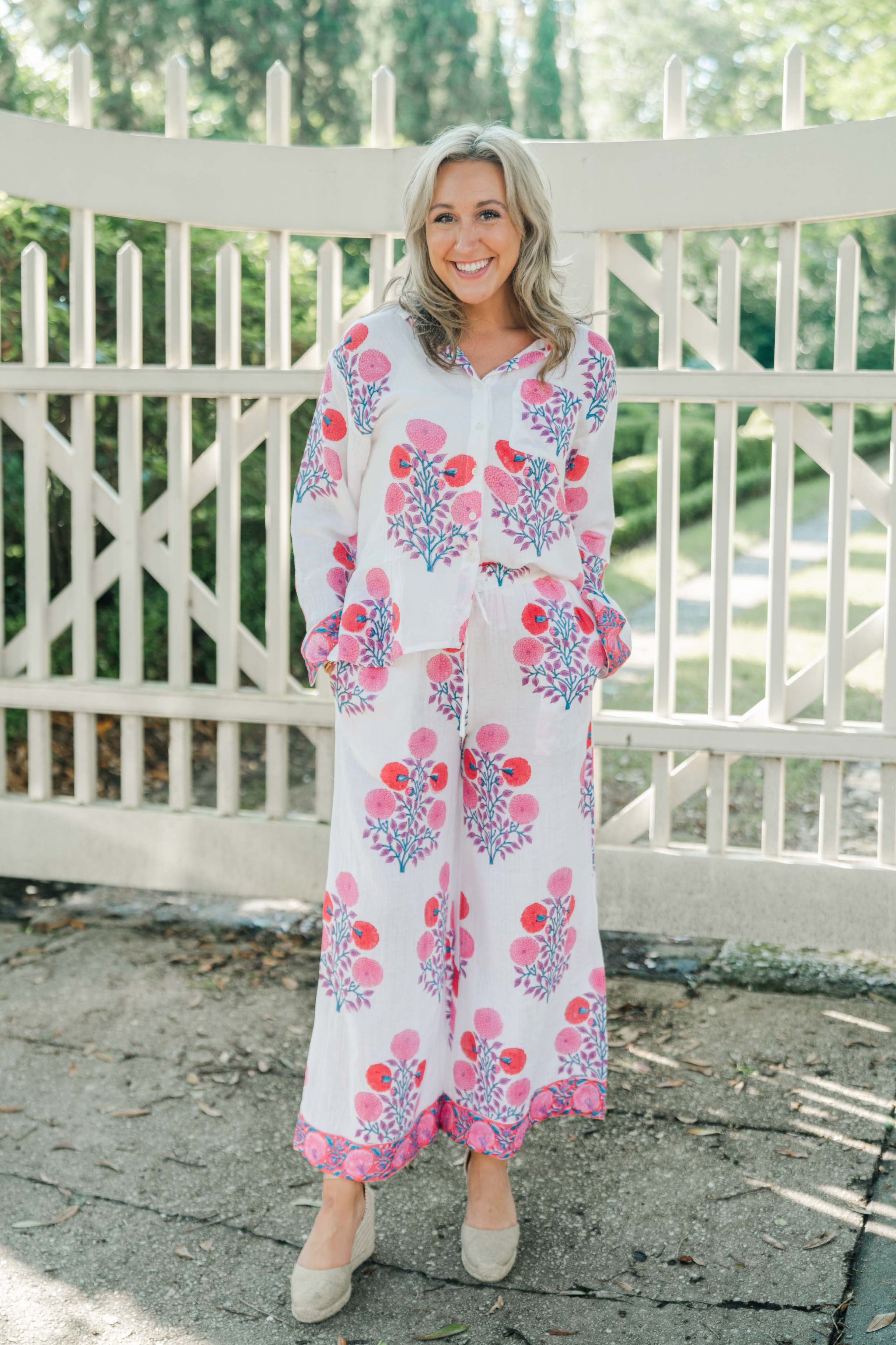 The Millie Pant is the go-to everyday pant. This pant is a relaxed style featuring a high waisted elastic band and wide legs.