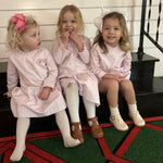 Pretty in pink hearts this woven dress works all year round. Light heart pattern works well for Valentine's Day, Spring Parties, and Father Daughter Dances !
