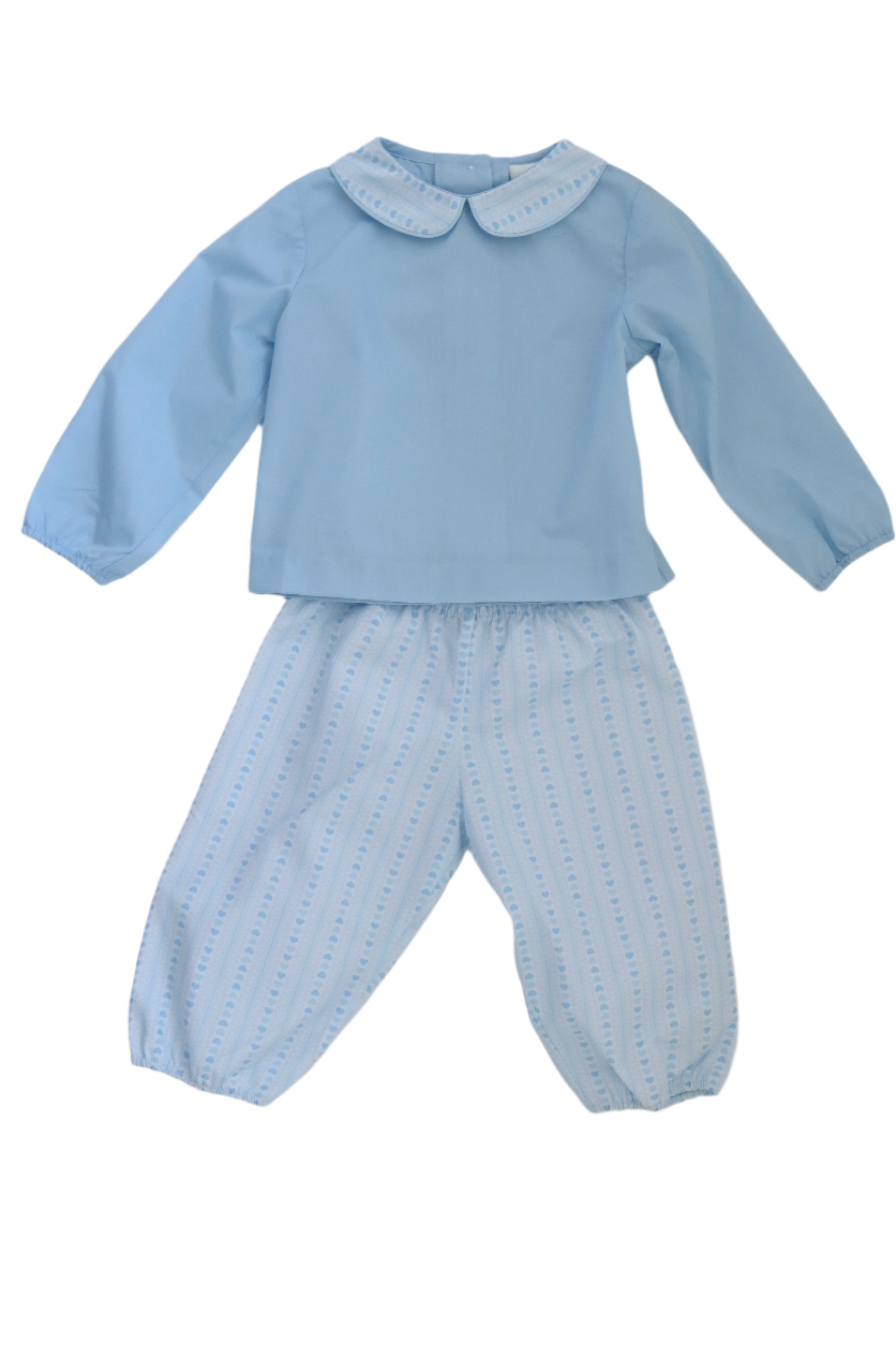 Every detail on this set is adorable, from the Peter Pan collar to the bubble silhouette pant, and even cuter when you add a monogram.