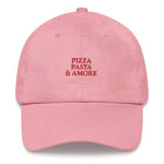 Celebrate your love for everything Italian with the Pizza, Pasta & Amore Embroidered Cap! This playful hat is perfect for pizza enthusiasts and pasta fans alike—men or women can wear it with pride. Featuring vibrant embroidery that shows off your passion for classic Italian flavors, it’s a fun way to add character to any casual outfit. Whether you're grabbing a slice or just rocking that Italian vibe, this cap brings a dash of amore to your everyday style. Comfortable, stylish, and undeniably charming, it’s a must-have for those who live and breathe pizza and pasta!