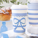 Take your drink on-the-go with this Blue Ribbon To-Go Cup! With a spring bow design, these hot cups are perfect for keeping your beverage secure while you're out and about. Stay refreshed and stylish as you sip with these fun To-Go Cups!